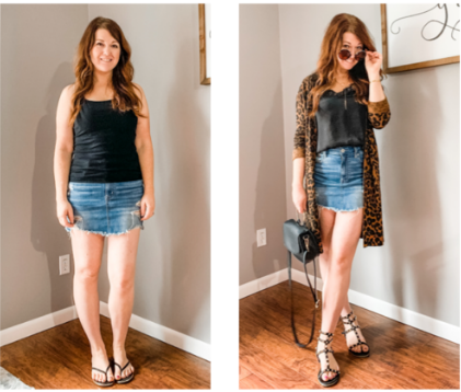In this example, I've now added on a lightweight leopard print cardigan because I love me a good animal print. This skirt is also a little short for my preference so it helps me feel more covered as well. Remember that looking fabulous and expressing your personal style is the goal here, but you want to make sure that you are comfortable too. In this case, I covered both. Win win!