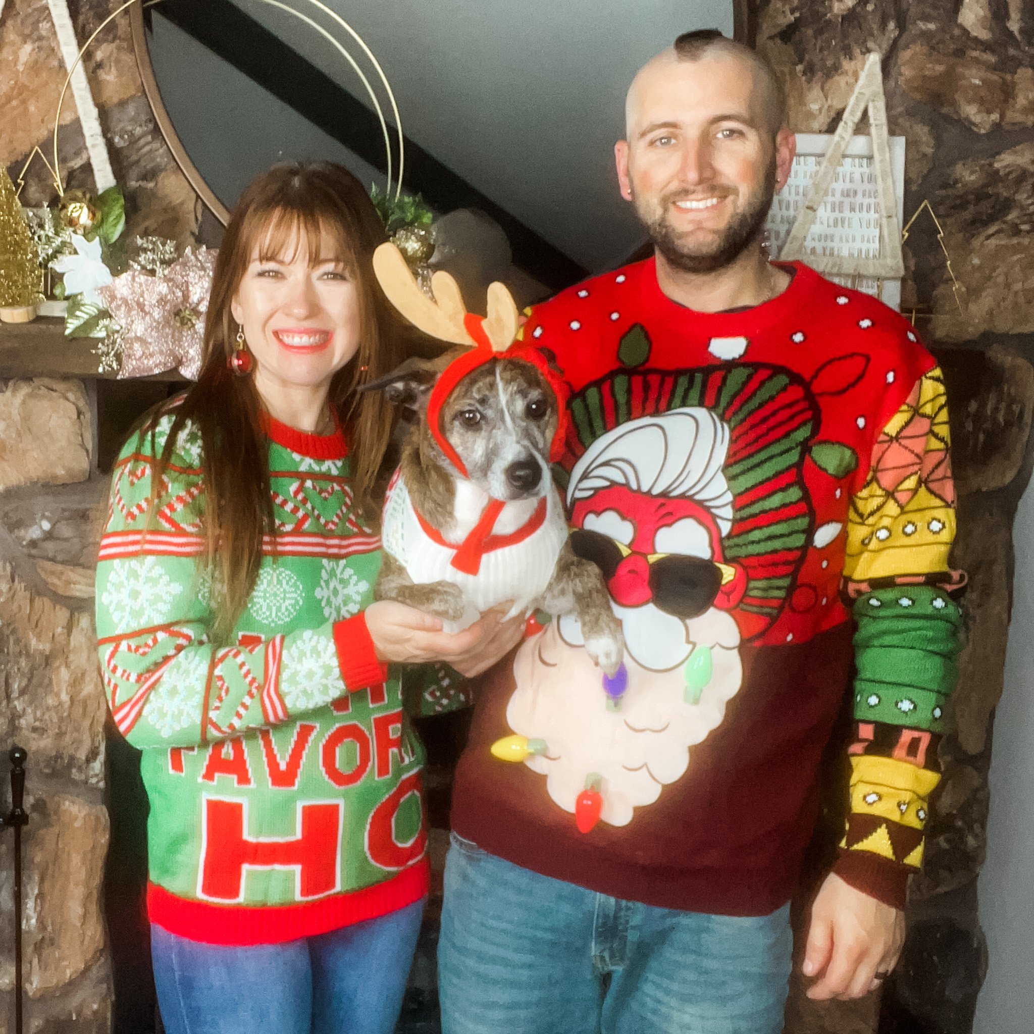 My hubs, Aaron, and my fur baby - Hadley, a rambunctious 5 year old rescue dog